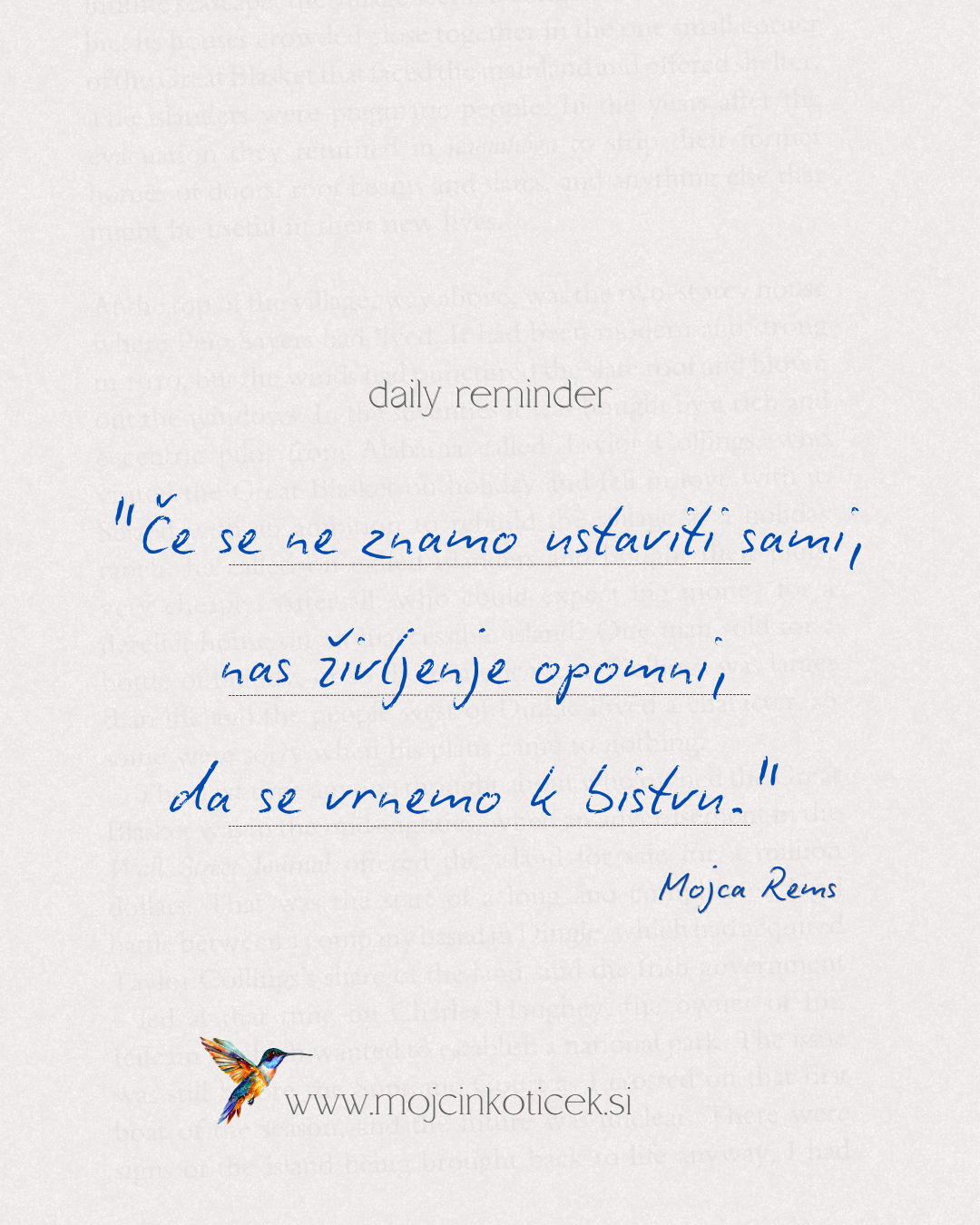 Če se ne znamo sami ustaviti in prisluhniti sebi, nas življenje nežno – ali pa tudi malo manj nežno – opomni, da se vrnemo k bistvu.