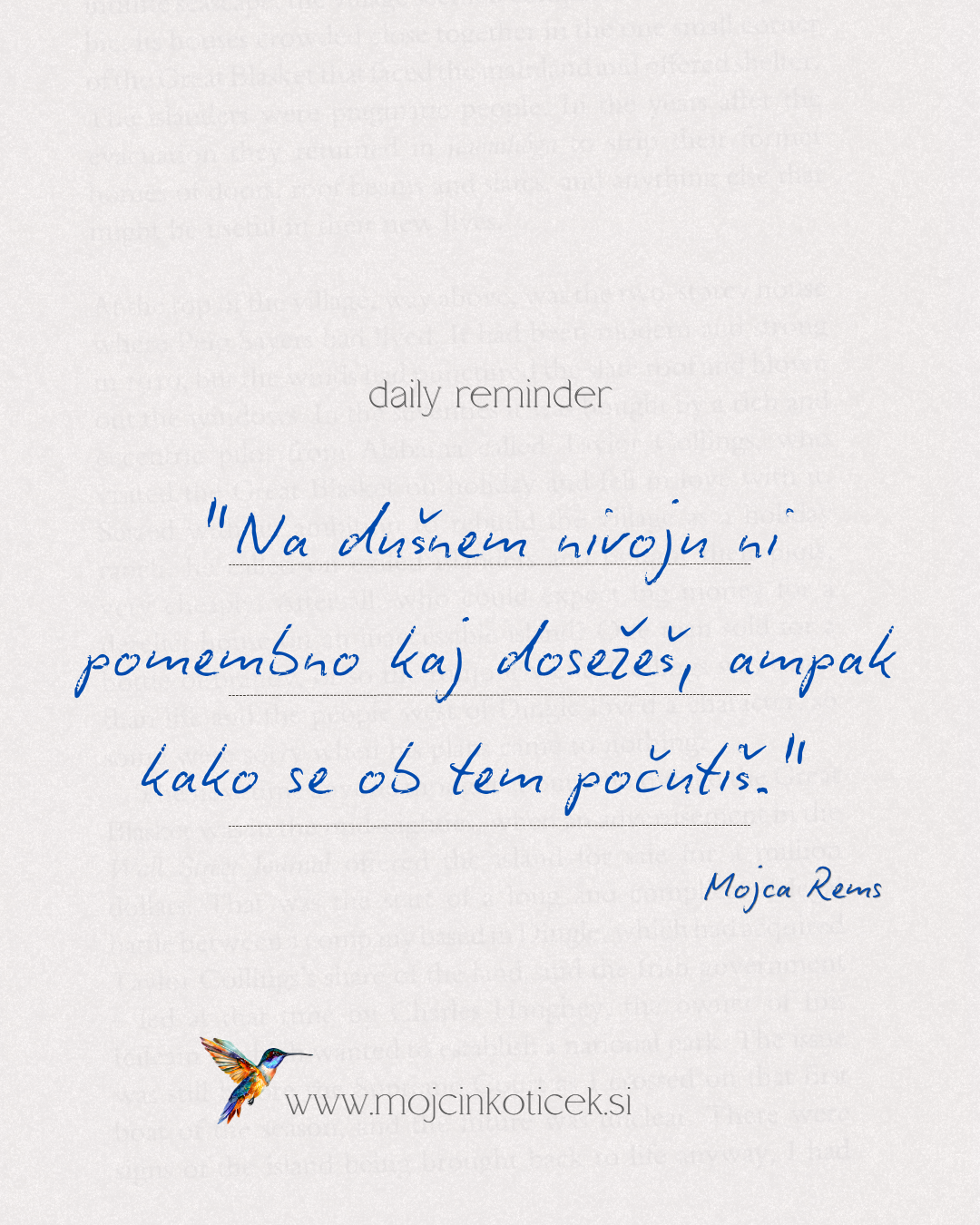 Ne pozabi, DUŠA ne meri uspeha v opravljenih obveznostih, temveč v tem, kako se počutiš v svoji koži.